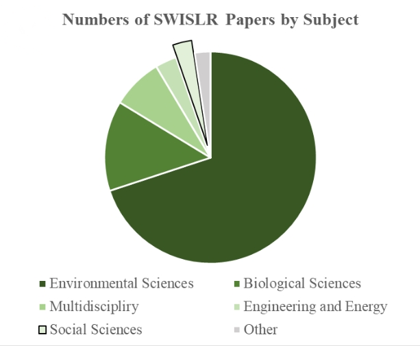 Figure 2. Proportion of subjects from the initial search of 3,056 SWISLR focused papers. The subjects analyzed further for SWISLR social science papers are in orange.